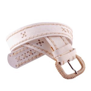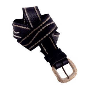 Cinto De Cuero Crudo Tejido Borde y Centro