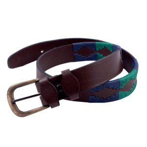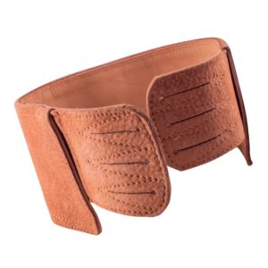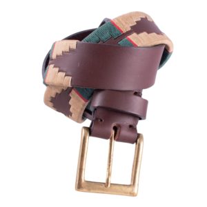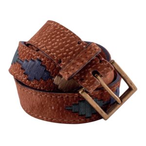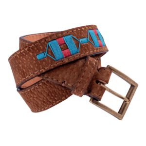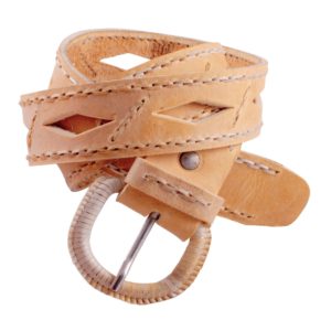 Cinto De Cuero Crudo Rombos Tejido En Centro
