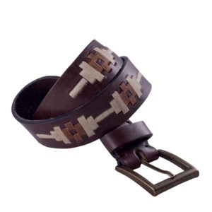 Cinto De Cuero Crudo Tejido En Borde Con Rombos