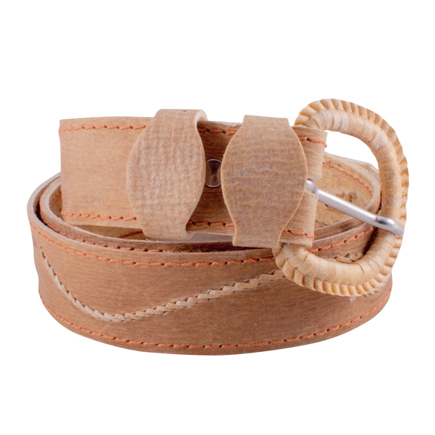 Cinto De Cuero Crudo Tejido Borde y Centro
