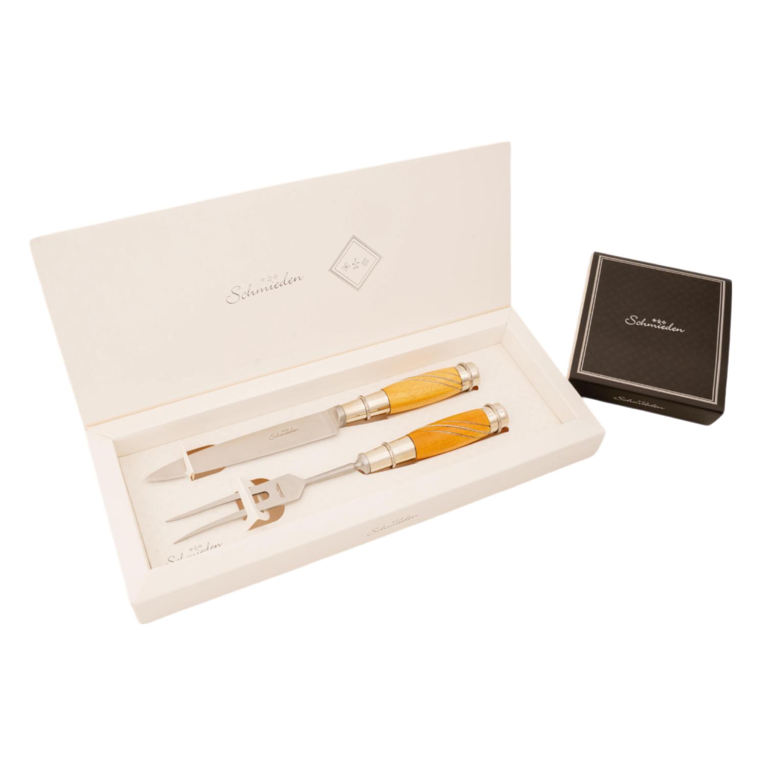 Juego De Cubierto Individual En Madera Y Alpaca 2 Virolas Y Alambre De Alpaca Linea Fina En Cajas Laminado Estilo CAMINO REAL