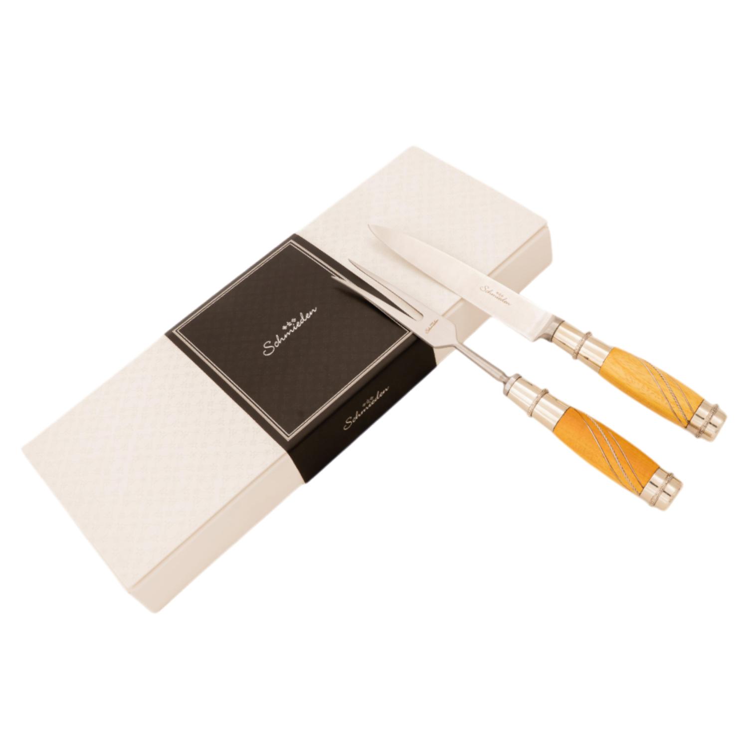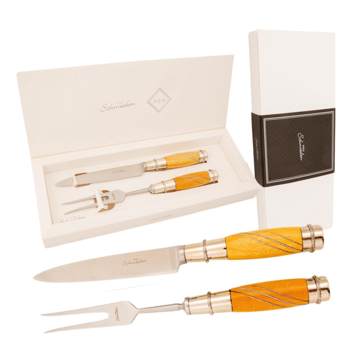Juego De Cubiertos Linea Fina Madera Con Alpaca 2 Virolas Soaje Labrada 12 Piezas En Caja De Madera Cedro Lustrado Pampeana