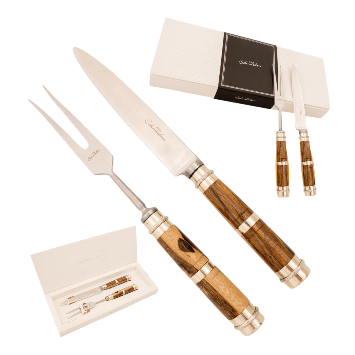 Juego De Cubierto Individual En Madera Y Alpaca 3 Virolas Linea Fina En Cajas Laminado Estilo AIRES DE SAN TELMO