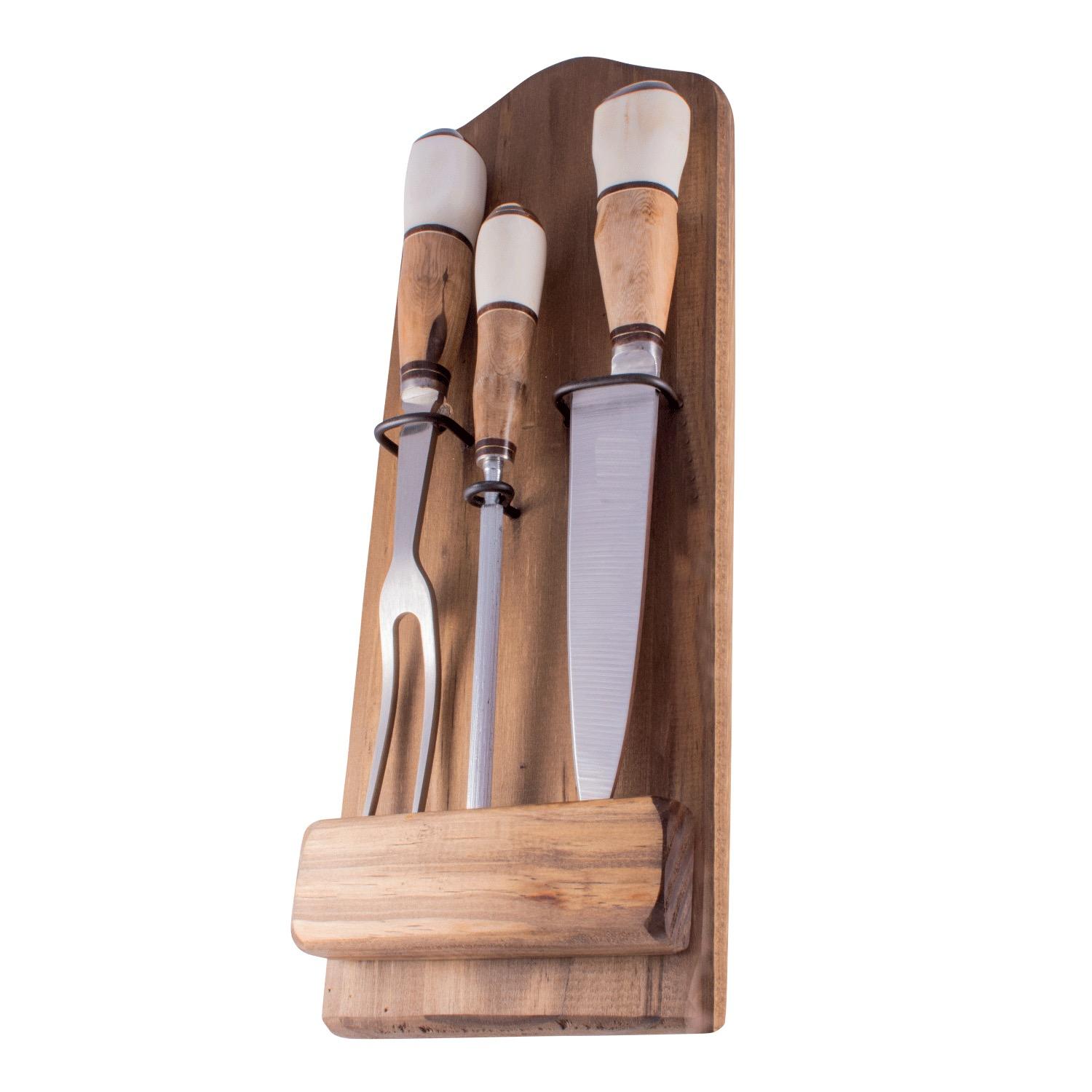 Cuchillo Eco Asta y Ciervo 20Cm Acero Inox Vaina Cuero Crudo