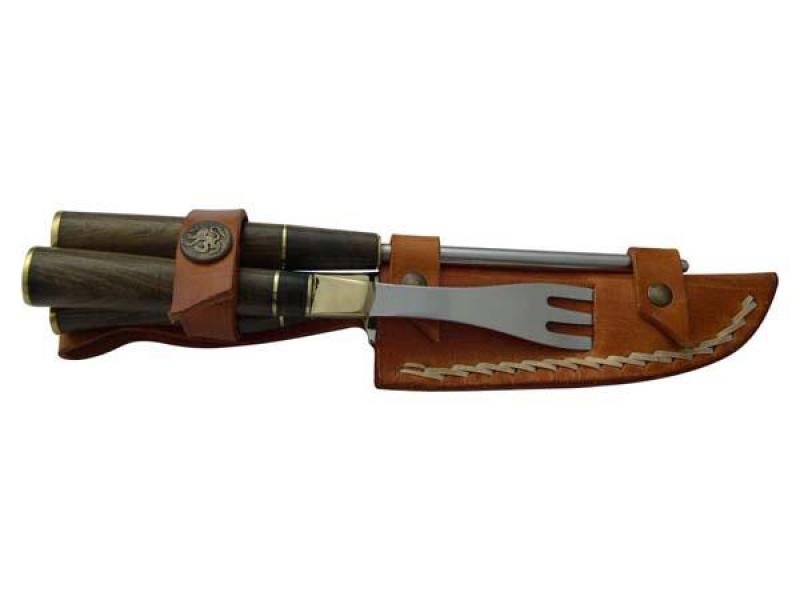 Juego Trinchar Triple Madera Combinado 11Cm Acero Inox Vaina Vaqueta