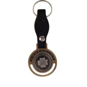 Llavero De Cuero Crudo Entacado Con Bombas De Alpaca y Dije