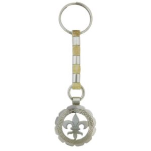 Llavero De Cuero Crudo Entacado Con Bombas De Alpaca y Dije