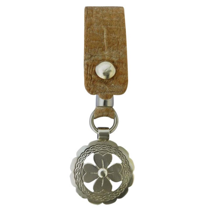 Llavero De Cuero Crudo Fino Con Botn y Dije Calado